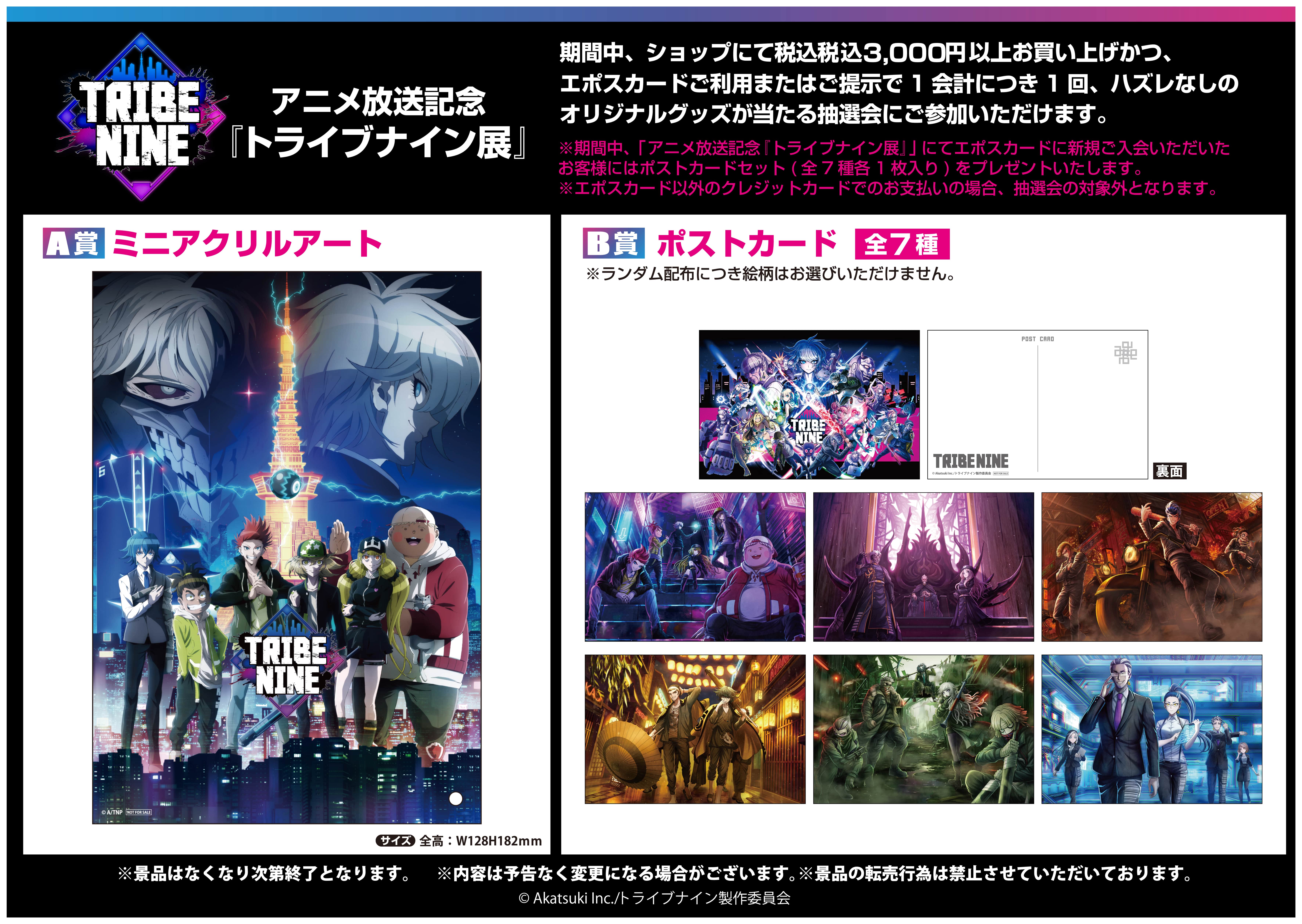 アカツキ × トゥーキョーゲームス 共同新規プロジェクト『TRIBE NINE (トライブナイン)』キャラクターデザインの小松崎 類氏&しまどりる氏による初期設定画の展示や新作グッズを販売する「トライブナイン展」を渋谷マルイ7階にて開催!