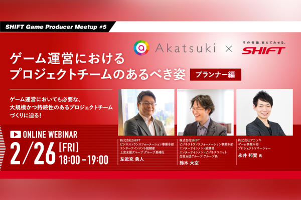 ゲーム事業本部 プロジェクトマネージャー 永井が2/26(金) 18:00-19:00開催 SHIFT×アカツキ のオンラインイベントに登壇します。